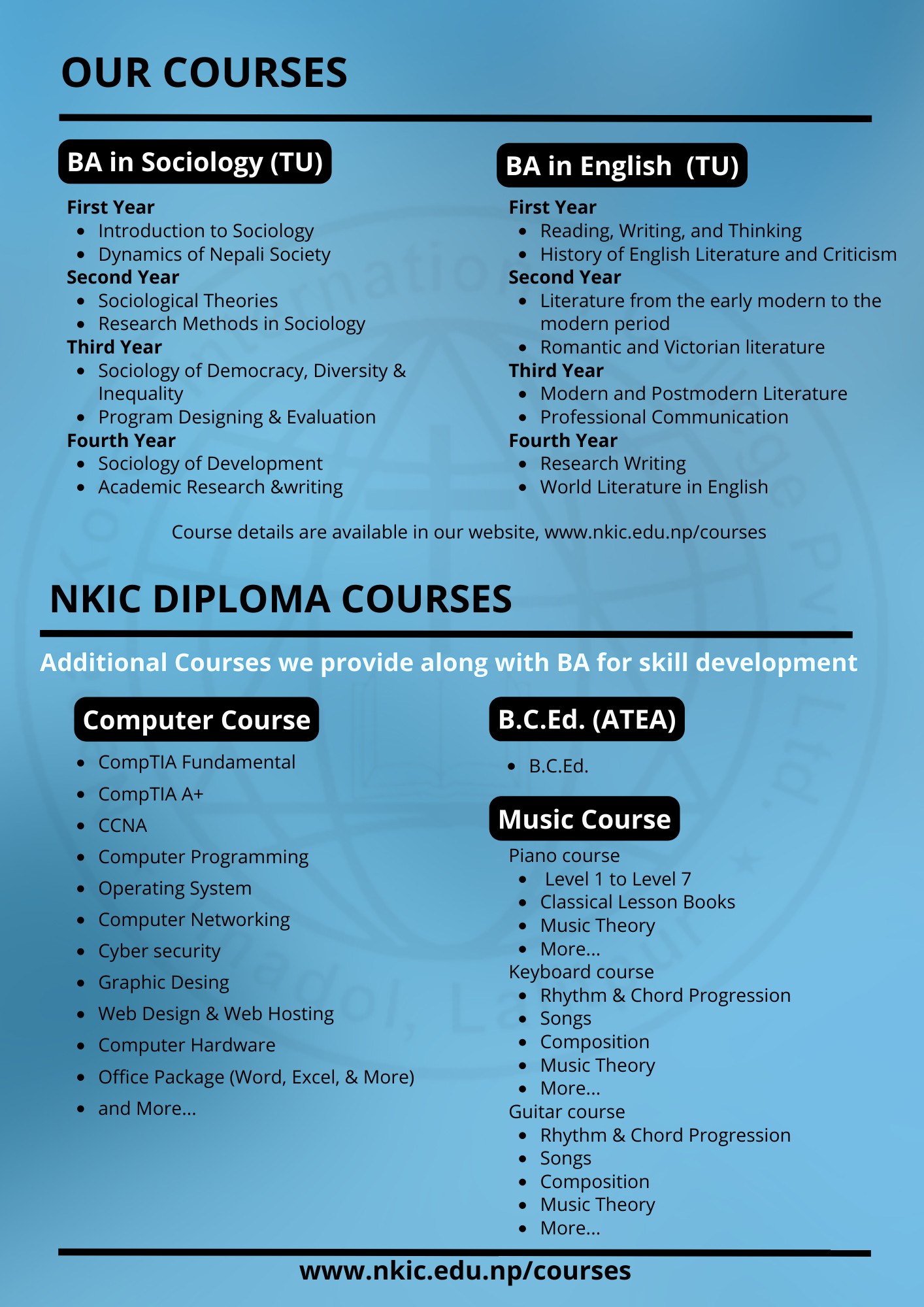 (Office package, Networking and Sceurity fundamentals, Web Design)